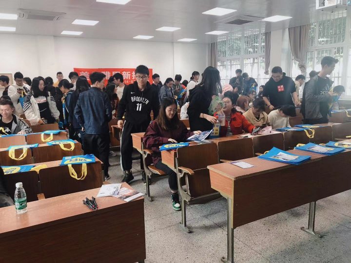 早起的鸟儿有虫吃,讲座9.30开始,同学们8.50就已经陆续坐好等待开始,聚精会神的看着先导视频。