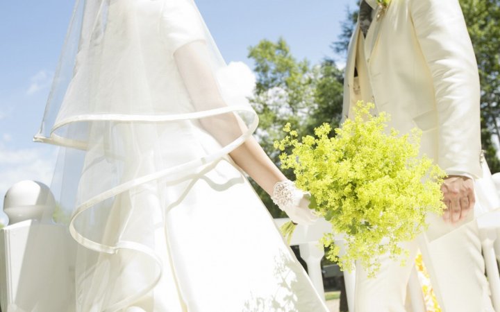 Western-style weddings these days. The bride wears a white wedding dress at the