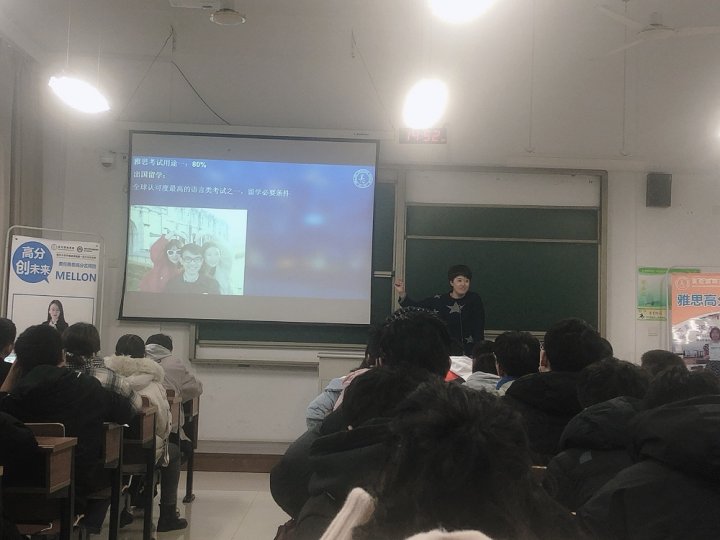 继29号水利学院讲座后,我们扬州美伦国际英语11月30号又连着奔往扬子津机械学院为即将考试的同学们举行了一场雅思讲座。下面,来瞅瞅现场情况。
