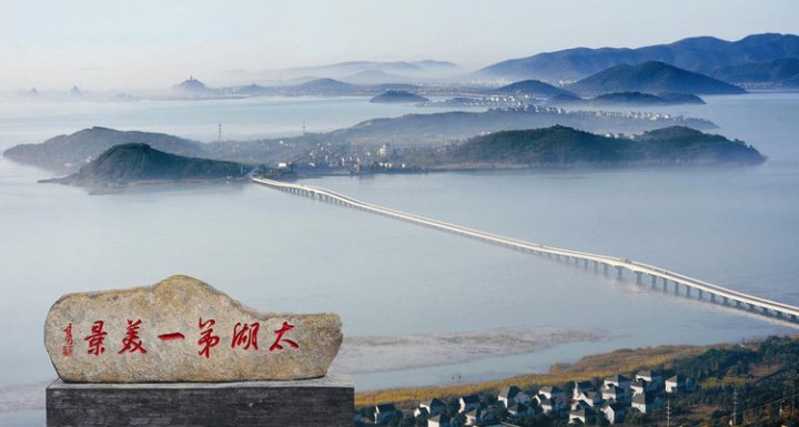 太湖是中国东部的一个淡水湖,占地面积2250平方公里,是中国第三大淡水湖,仅次于鄱阳和洞庭。太湖约有90个岛屿,大小从几平方米到几平方公里不等。太湖以其独特的“太湖石”而闻名,太湖石常用于装饰中国传统园林。太湖也以高产的捕鱼业闻名。自上世纪70年代后期以来,捕捞鱼蟹对沿湖的居民来说极为重要,并对周边地区的经济作出了重大贡献。太湖地区是中国陶瓷(ceramics)业基地之一,其中宜兴的陶瓷厂家生产举世闻名的宜兴紫砂壶(clay teapot)。
