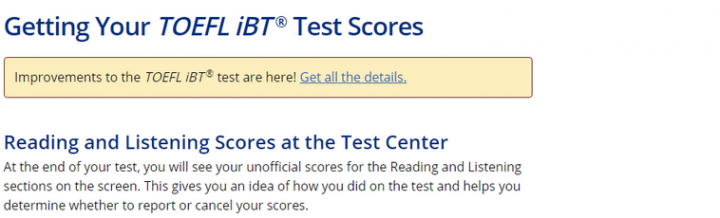 2月13日ETS官网宣布,从本周末起,在全球同步推出托福考试的即刻出分功能。考生在完成考试离开考位前,即可在考试电脑上立即查看阅读和听力部分的非正式成绩单,帮助考生了解当天这两个部分的发挥如何,以及本次托福成绩是否要进行寄送或取消。