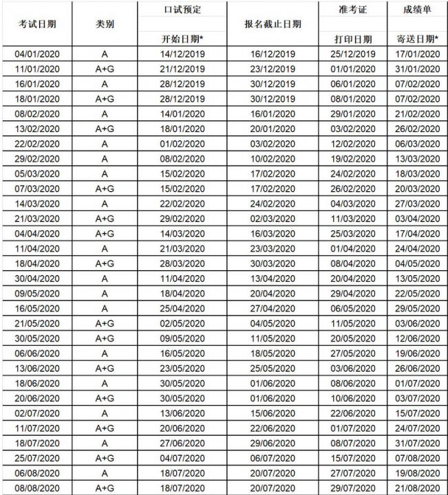 ▲早前雅思官方发布的2020年雅思考试时间安排