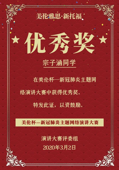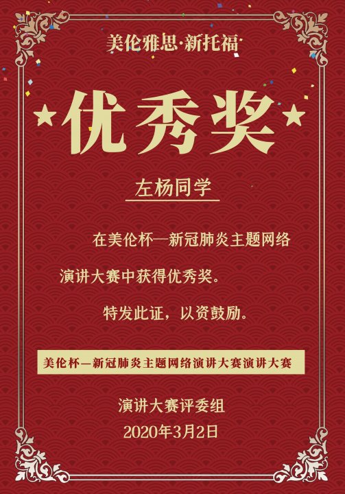 美伦杯新冠肺炎主题网络演讲大赛:优秀奖名单
