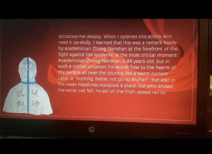 演讲开始以数据的形式展开讨论,并且以新老肺炎进行对比,清晰有力的展示了新型肺炎的严峻程度,加上学生的“服化道”使得原本沉重的话题变得轻松诙谐,让人深入其中,优秀奖非你莫属。