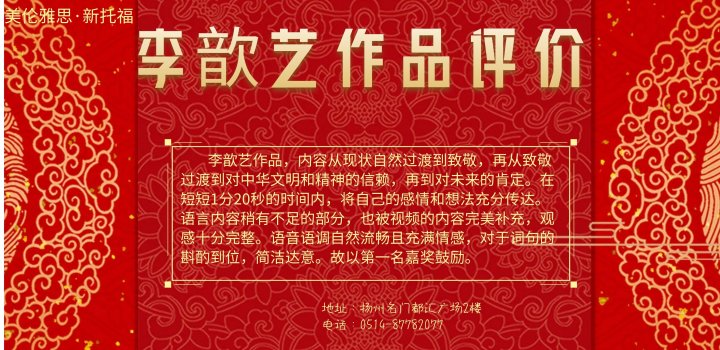 本次颁奖大会旨在给学生搭建一个网络英语平台,提升他们学习英语的兴趣和积极性。让他们乐于说英语、敢于说英语、积极说英语,通过此次比赛给学生营造了一种好的英语学习氛围。扬州美伦国际英语后续还有更多精彩美伦英语主题活动陆续上演,让我们拭目以待!