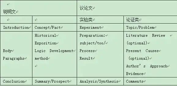 就目前出版的几本剑桥雅思系列而言,学术类阅读大致可分为两类:说明文和议论文。其中,说明文从客观的角度介绍或陈述一个既定的事实,议论文则通常针对某个特定的问题进行分析和论证,有时一并提出解决的方案。如下的表格对雅思阅读及相应的文章结构做了一个粗浅的分类: