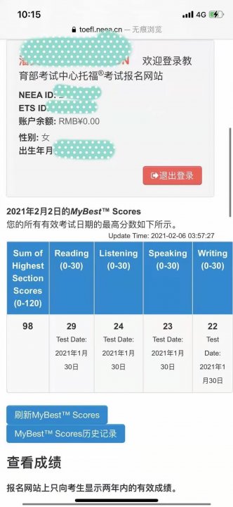 学托福学了好几个月了,从一开始英语基础很差,对英语很没有自信,到后来经过这么长时间考出了理想的成绩,一方面是自己的努力,一方面也少不了美伦的支持。
