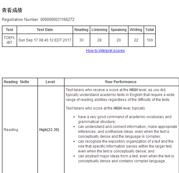此外,我得到了一个重大教训。口语的练习是至关重要的,平时上课一定要多多练习。我也是后来自己做TPO的时候才发现口语准备时间相当少,很难做好准备,还是比较困难的。本身在从小的英语学习中口语就是被忽略掉的部分,而现在,在课外更是很难找到机会训练,因此一定要抓住上课的机会多多开口。否则真的会在紧张的时候连“He, She”这种最基本的东西都出错。